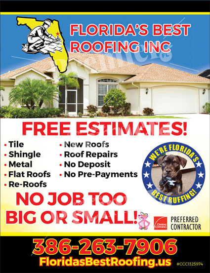With free estimates, no deposits, and no pre-payments required, Florida’s Best Roofing makes it easy and affordable to protect your home. Their motto says it all — “We’re Florida’s Best Ruffin’!”