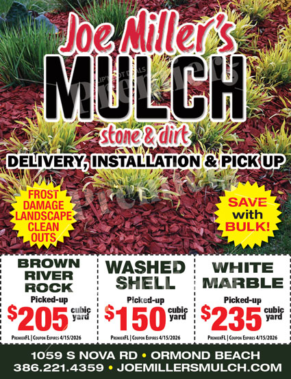 Conveniently located on South Nova Road, Joe Miller’s Mulch has become a go-to source for dependable landscaping materials in the Ormond Beach area. Whether you’re refreshing garden beds, upgrading landscape design, or completing a large-scale project, customers can rely on quality products and friendly local service.