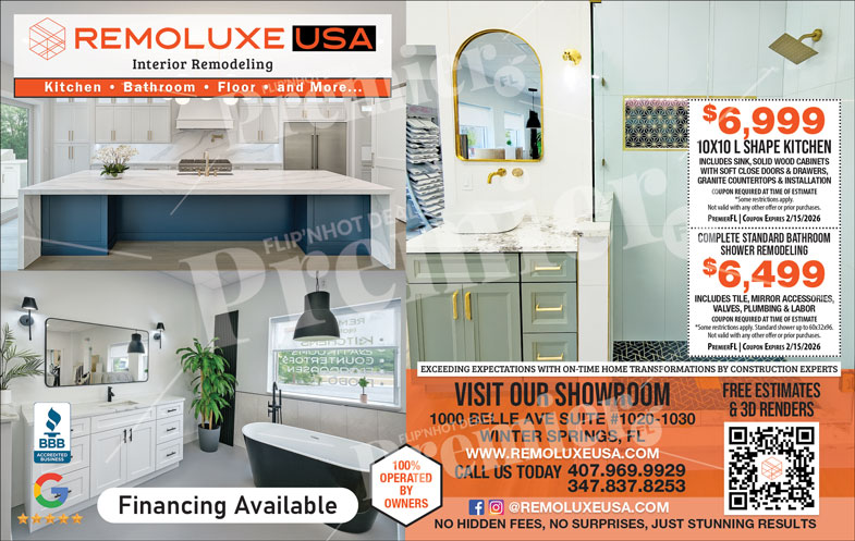 Remoluxe USA is a full-service interior remodeling company specializing in kitchen, bathroom, and flooring renovations throughout Winter Springs and Central Florida. As a 100% family-owned and operated business, Remoluxe USA is committed to delivering high-quality craftsmanship, transparent pricing, and stunning results.