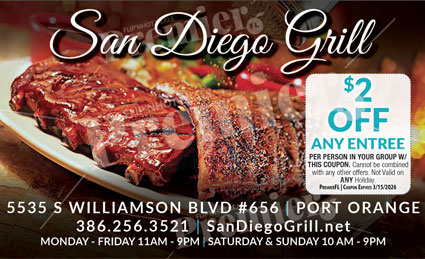 Located on South Williamson Boulevard in Port Orange, San Diego Grill offers a welcoming atmosphere with friendly service and a broad menu that fits any occasion. It’s an ideal choice for group dining, family meals, or anyone searching for a casual grill and bar experience with consistent quality.